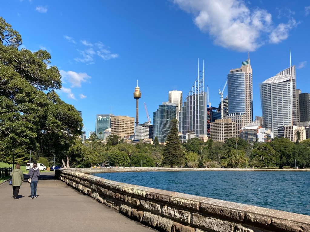 Deixamos as malas em um locker no restaurante City Extra, bem ali no cais, e seguimos caminhando rumo ao Jardim Botânico Real de Sydney.