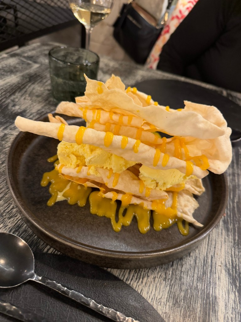 A sobremesa surpreendeu: um mil-folhas de bacalhau com creme de gemas, improvável na teoria e extraordinário na execução, mostrando como a tradição pode ser reinventada com respeito e criatividade.