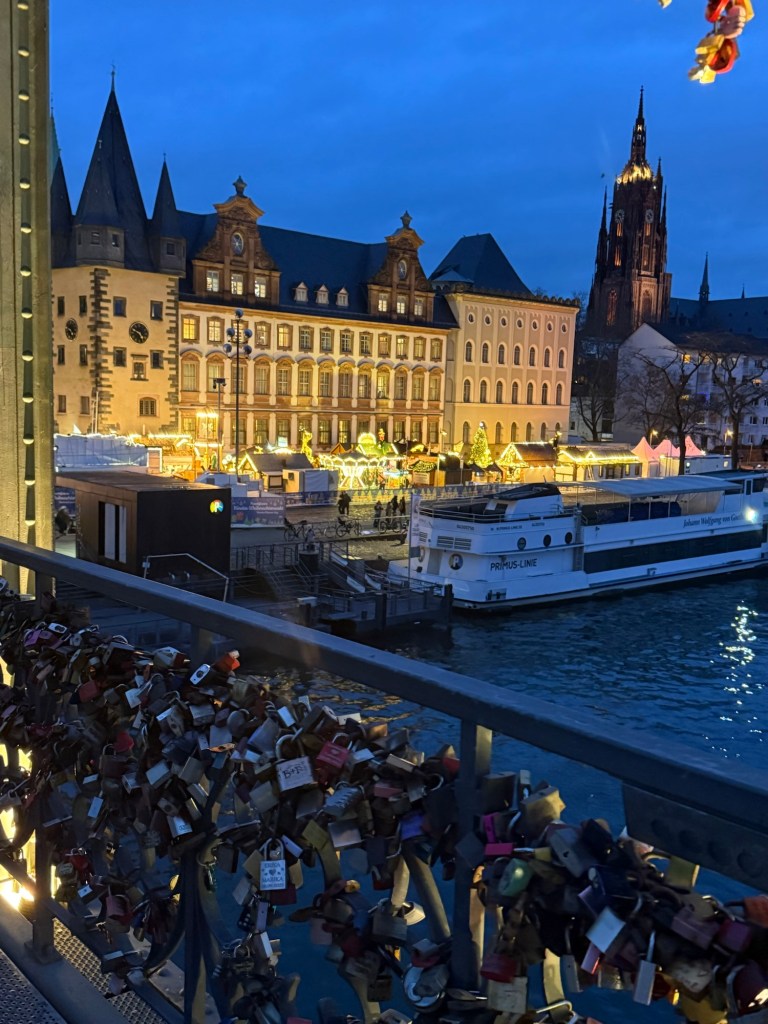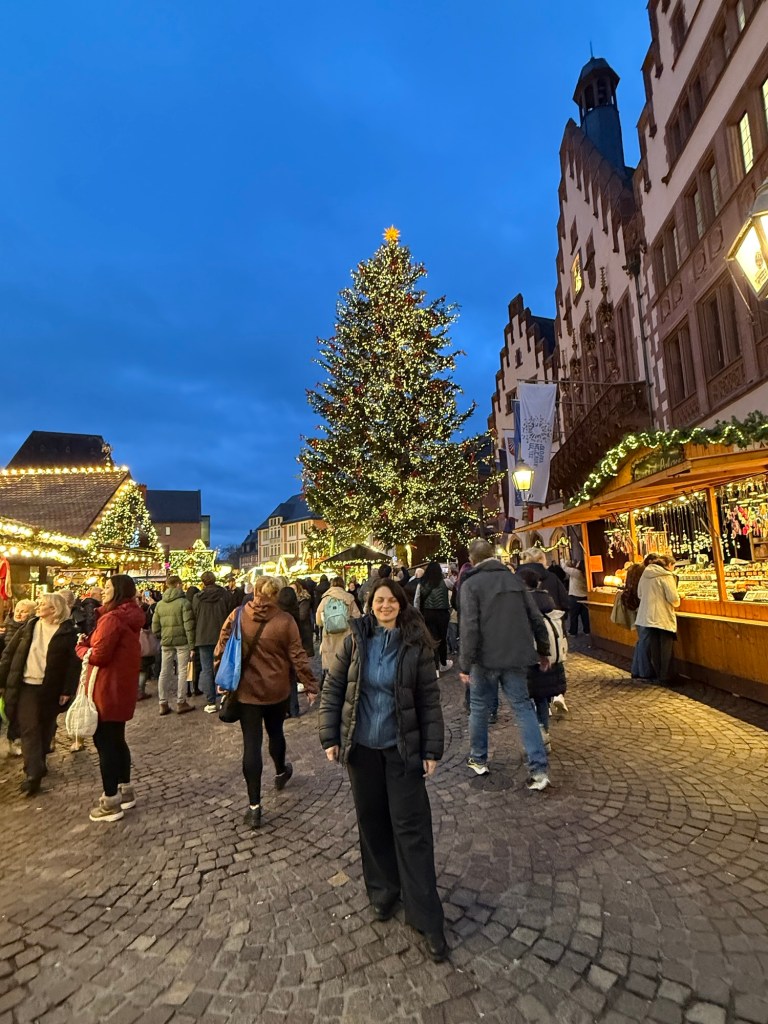 A poucos minutos dali está o Mercado de Natal de Frankfurt, um dos mais antigos da Alemanha, com registros históricos desde o século XIV.