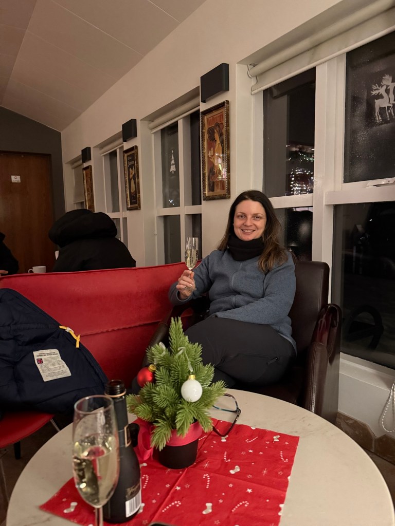 Como o hotel fica em um ligar afastado de qualquer luz artificial, depois do jantar, o guia nos avisou sobre as chances de ver a aurora boreal naquela noite. Saímos do hotel em silêncio, olhos voltados para o céu, esperando algum sinal. Não há promessa — apenas a possibilidade. E, curiosamente, isso torna a espera ainda mais bonita.